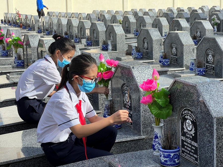tham gia chương trình "Hoa dâng mộ liệt sỹ" quận Lê Chân. Đây là một hoạt động thiết thực, ý nghĩa, giáo dục đạo đức truyền thống "Uống nước nhớ nguồn" cho đội viên nhân dịp kỉ niệm 75 năm Ngày Thương binh - Liệt sỹ (27/7/1947 - 27/7/2022)
